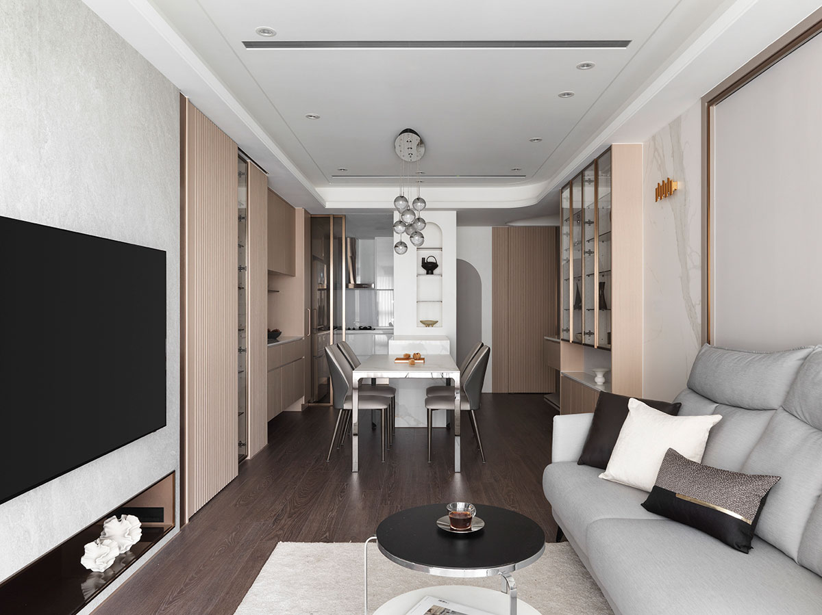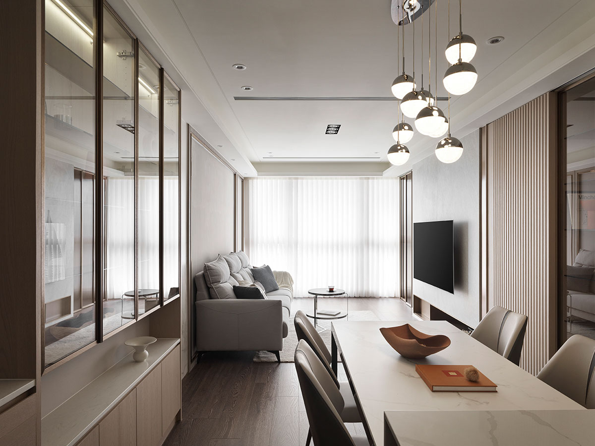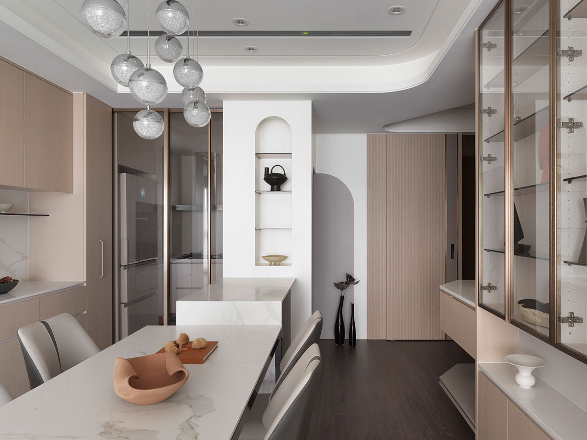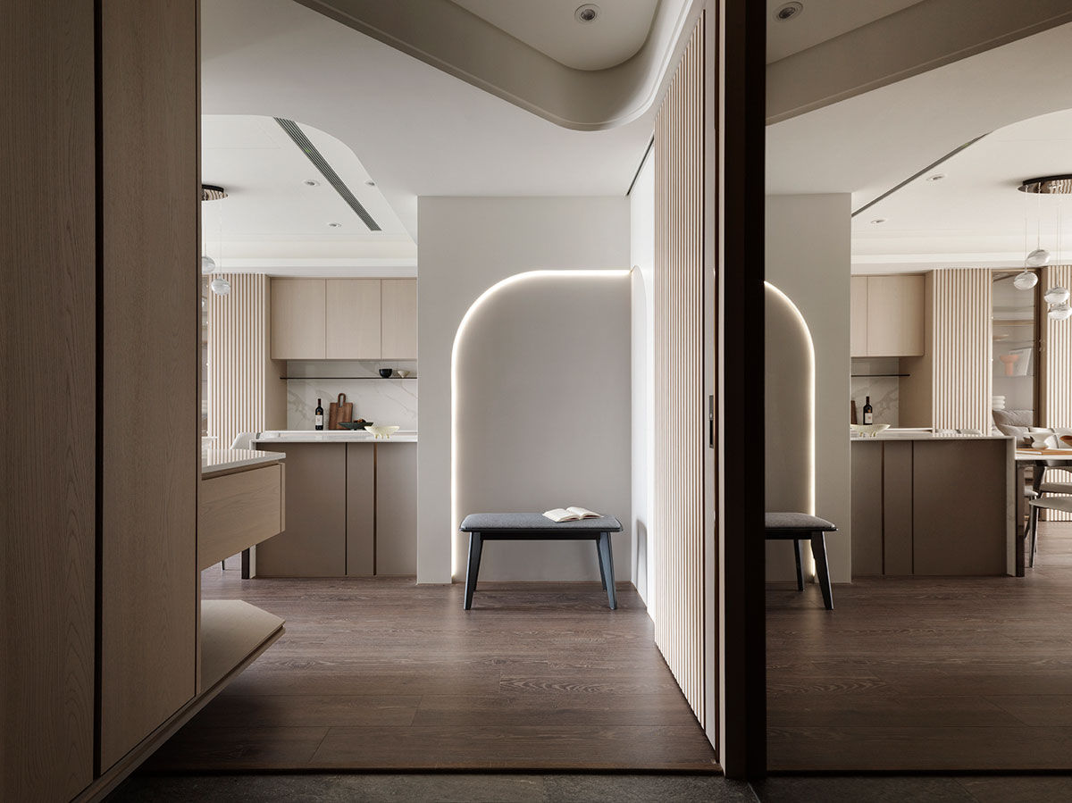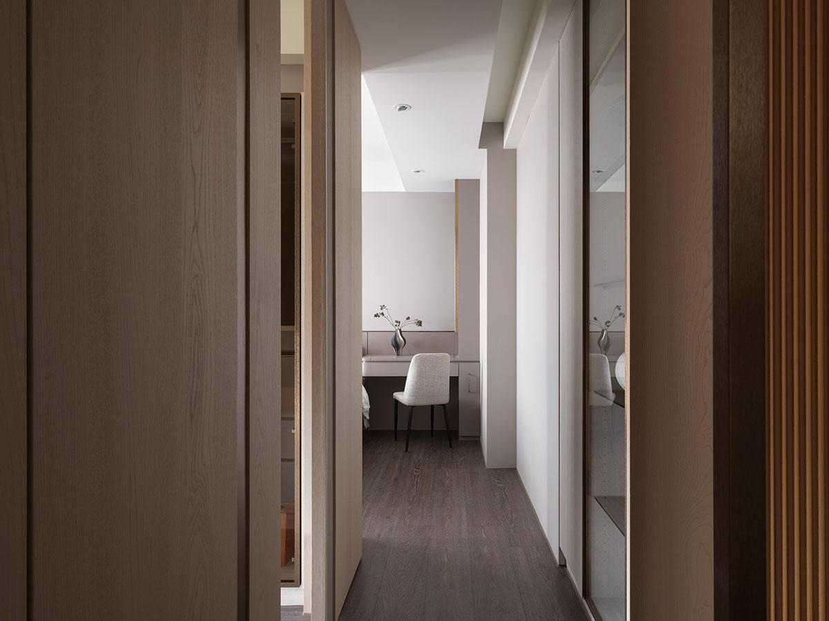 Designed for two single women, this residence redefines the concept of home. The open, flowing layout extends sightlines and encourages interaction. The core of the design revolves around transforming the original three-bedroom layout into two spacious suites, connected yet independent. A sense of quiet luxury guides the palette—warm woods are paired with accents of metal and leather. The bedrooms adopt a shared approach, connected by movable sliding doors. Using low-formaldehyde, durable, and highly recyclable boards showing a commitment to environmental responsibility.